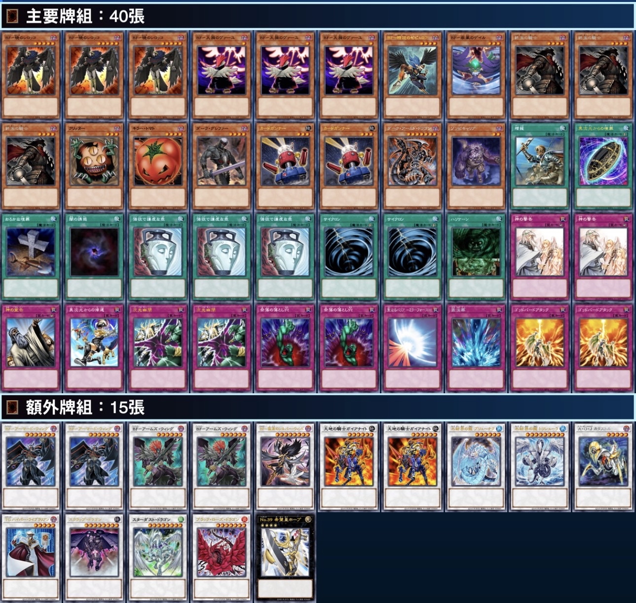 1103環境 墓地BF牌組 主要牌組:40 額外牌組:15