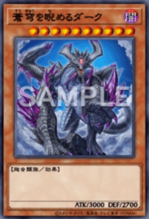 BPRO-JP026 (R)蒼穹を睨めるダーク (睨視蒼穹之暗) 效果怪獸 10 暗 爬蟲類族 3000/2700 此卡名的①②③效果一回合可以各用一次 ①:此卡在墓地存在的狀態,對手發動怪獸效果從牌組或EX牌組將怪獸特殊召喚的場合可以發動。此卡特殊召喚 ②:包含將怪獸特殊召喚效果的怪獸效果發動時,將我方手牌˙場上1張卡除外可以發動。該效果無效並破壞 ③:此卡被除外回合的結束階段可以發動。我方除外狀態其他怪獸1體回到墓地