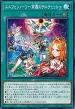 BPRO-JP057 エルフェンノーツ~再邂のテルチェット (耀聖~再邂的三行連~) 永續魔法 ①:我方中央主要怪獸區的怪獸不成為對方效果對象 ②:根據我方中央主要怪獸區的怪獸根據屬性讓此卡得到以下效果 ●炎˙地:我方S怪獸攻擊守備表示怪獸的場合,給予對方該攻擊力超過該守備力數值的戰 鬥傷害 ●水˙風:我方場上其他表側表示魔法˙陷阱卡不會被對方效果破壞 ●光˙暗:我方受到的戰鬥傷害為0