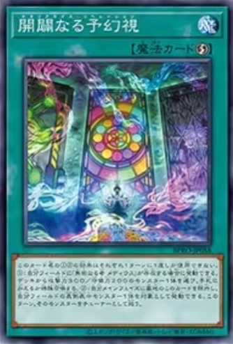 BPRO-JP058 開闢なる予幻視 (開闢的預幻視) 速攻魔法 此卡名的①②效果一回合可以各用一次 ①:我方場上有「無垢なる者 メディウス」的場合可以發動。牌組攻擊力300/守備力200怪獸1體加入手牌或特殊召喚 ②:我方主要階段將墓地此卡除外,以我方場上表側表示怪獸1體為對象可以發動。這回合該怪獸視為協調