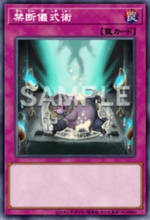 BPRO-JP077 禁断儀式術 (禁斷儀式術) 通常陷阱 此卡名的①②效果一回合可以各用一次 ①:等級合計到要和儀式召喚的怪獸相同為止,將我方墓地怪獸除外,將我方墓地儀式怪獸1體儀式召喚。此效果特殊召喚的怪獸結束階段破壞 ②:將墓地此卡除外可以發動。這回合我方儀式召喚的場合1次,可以將我方墓地儀式怪獸作為解放的代替除外